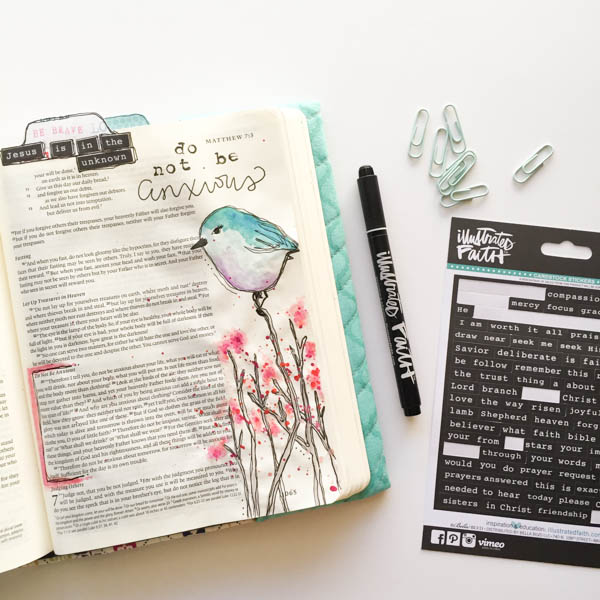Hello, friends. Bekah here. I’m journaling today in a scripture that’s so familiar to me, and yet settling on my heart afresh. One thing I love about Bible journaling is that it speaks to the visual part of my brain and the art sort of seals the truth into my mind and heart in a special way. Matthew chapter 6 is speaking to me in my circumstances today just as it has a hundred times before. Isn’t that amazing?! The Word of God is alive and timeless. That blows my mind sometimes.