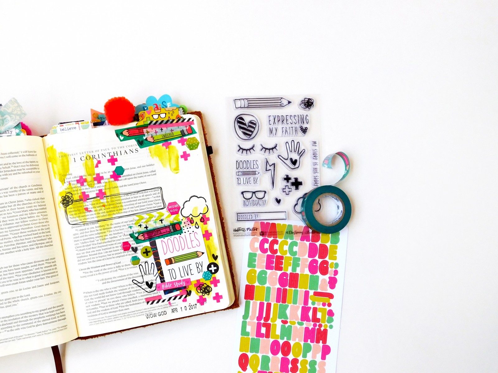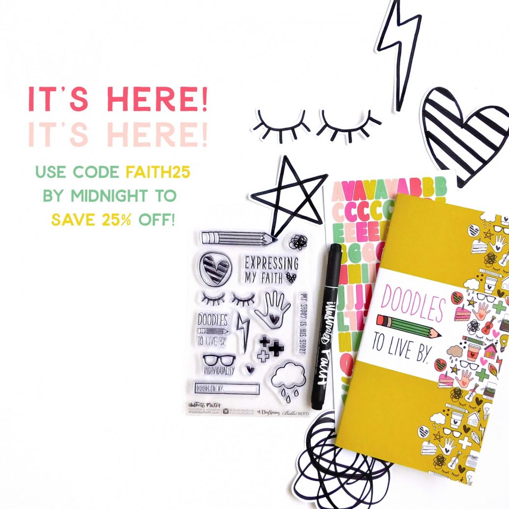 Hiya friends!! The latest bible journaling monthly kit, doodles to live by is here and it is FANTASTIC!!! Our sweet Elaine Davis shares her heart and art through this inspiring kit! You can pick it up today (before midnight) and save 25% by using code FAITH25!