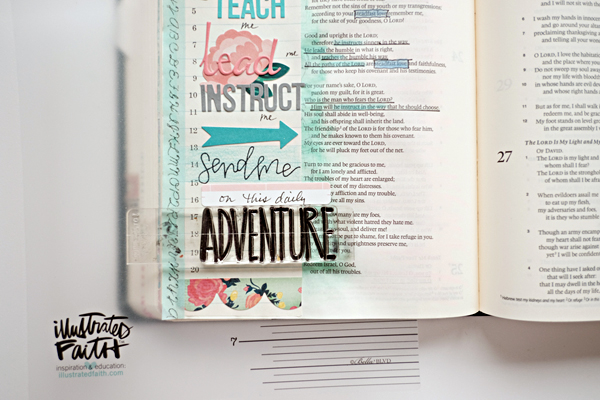 Supplies: ESV Journaling Bible | Bella Blvd Illustrated Faith stickers and writing mat | October Afternoon, Kelly Purkey, and Crate Paper stickers | Ali Edwards Story Kit stamps | Illustrated Faith Brave stamps | washi tape | Shimelle date stamp
