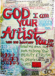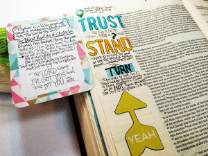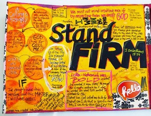 And then from there, to really solidify the whole sermon or study in my mind I “Art it Up” either in my Art Journal, or in my bible. The photo below is from inside my bible from a sermon by Pastor Bill at Foothills Bible Church from August 2014.