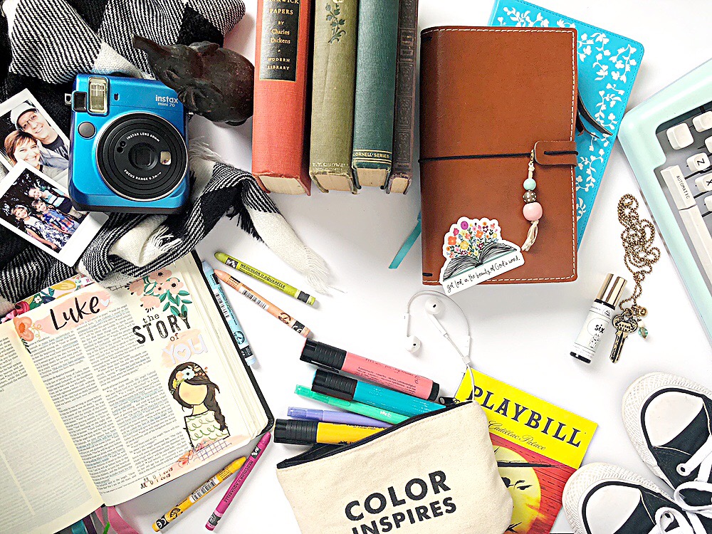 We’ve had her guesting for us a few times and we’ve loved having her and we know you have too!!! We are excited to add her to the Print & Pray blog team! She’s an amazing writer and creates beautiful and meaningful pages in her Bible. Since we just recently introduced the rest of the team, I thought it would be fun for her to do the same thing, only she gets her own special post. I asked her how Bible journaling has changed her life and had her send me a couple of her favorite Bible journaling entries as well as the fun flatlay!