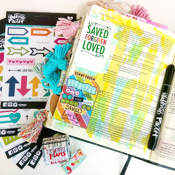 Illustrated Faith Best Mess Journaling Kit by Elaine Davis | Illustrated Faith by Bella Blvd Date Stamp | Illustrated Faith by Bella Blvd .65 Pen | Memento Ink in Bahama Blue
