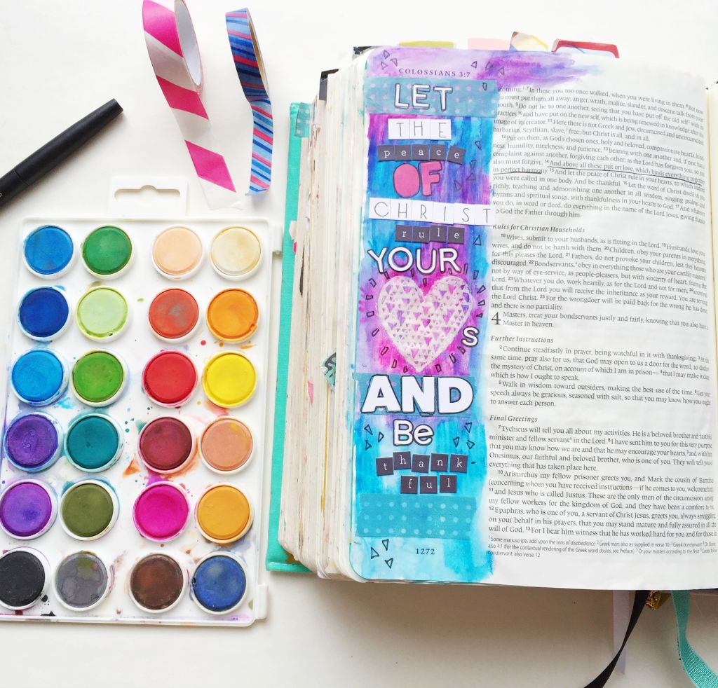 One of my favourite products from the Genesis Kit is the wide washi tape. It’s filled with lots of different designs which work well as stand-alone Bible journaling pieces. Seriously, you can stick one of these down on your page and not do a single thing more and it would look fabulous. Alternatively you could use one as a jumping off point for the rest of your entry. That’s what I did for this entry in Isaiah 25.