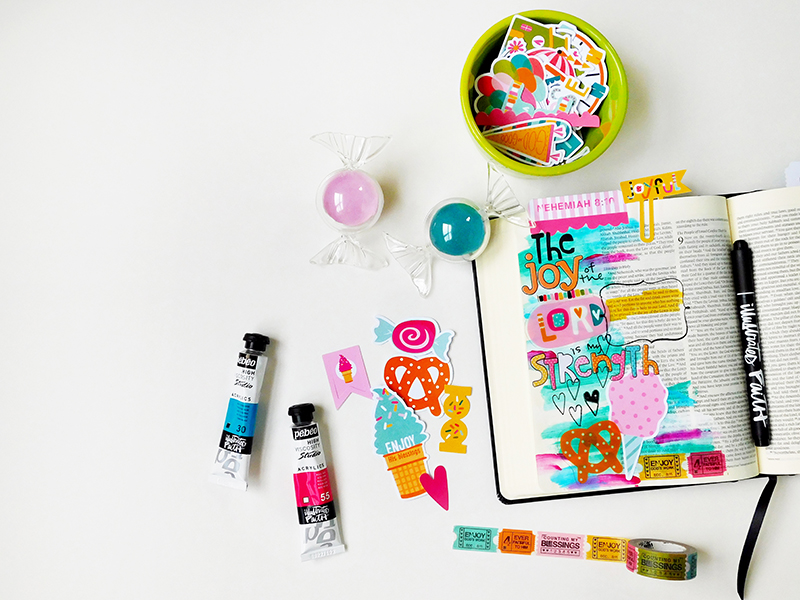 Many people think I’m a perpetual optimist based on my wardrobe, my art, & my Instagram feed, but actually I am quite a pessimist. It’s in my brain chemistry to jump to the worst possible conclusion & assume the worst about every situation. With my mental diagnoses, Obsessive Compulsive Disorder & Anxiety, it comes naturally for me to fixate on the negative details. So finding joy for me has always been a quest. Trying to see the good in the world & fixate on that instead has been a constant necessity. It’s not always easy, in fact some days it’s near impossible, but ever since starting Bible Journaling, it’s become a little easier. I wanted to create a collection for this incredible community that just radiates JOY & helps others to find the wonderful serendipitous blessings that God brings to our lives each day!