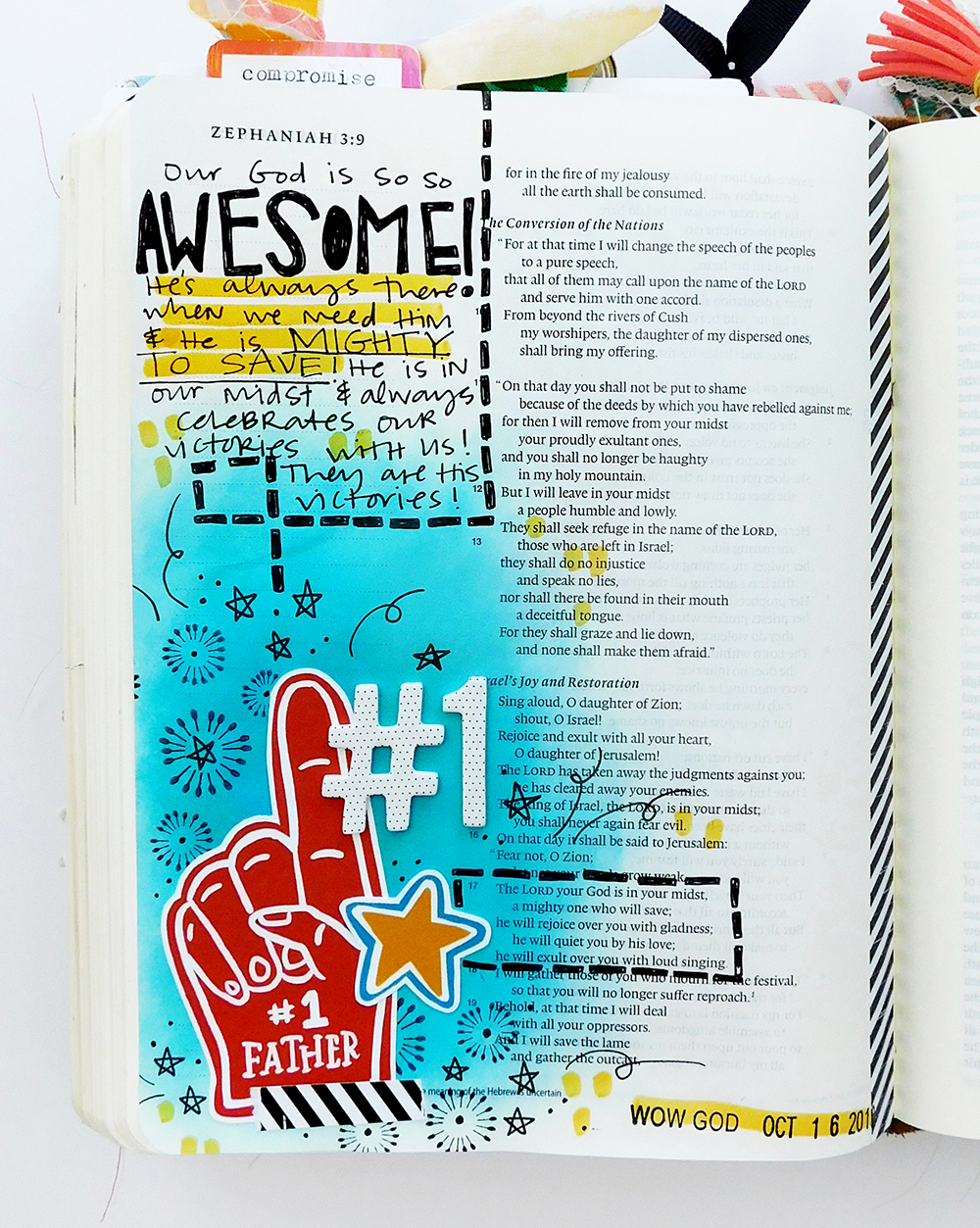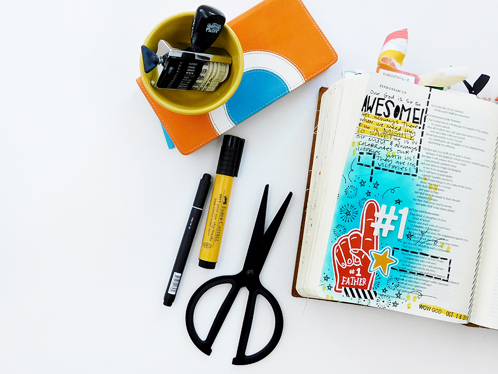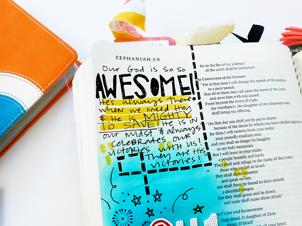 I sat down to create this page with that mindset & had a plan to create a crazy elaborate page with lots of layers & glitter. But as I pulled out the supplies I realized that it’s pretty darn simple– our God is an AWESOME God! It’s right there in Scripture for us in black & white: