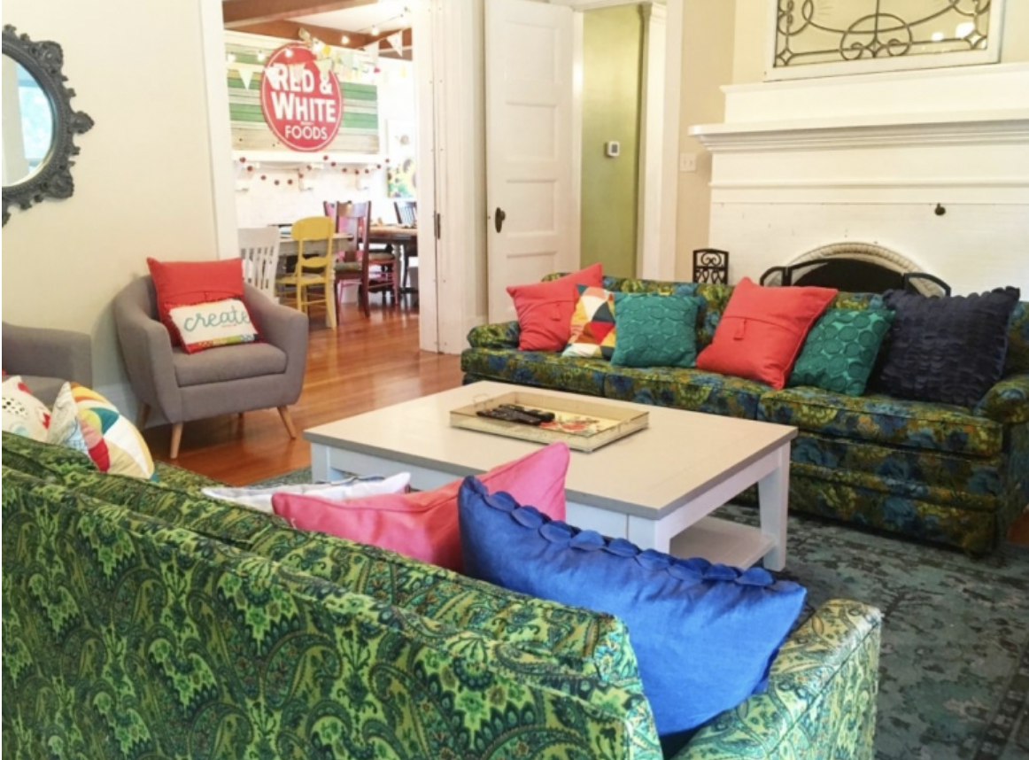 Where: Where all your dreams come true. LOL, ok, just me? I had been DREAMING of attending an event at the WHATEVER CRAFT HOUSE for years before my first retreat there and now I beg Meg to let me come back as often as I can get away! It’s every creative person’ s dream space! The craft house is located in Newton Kansas. But let’s talk more about this BEAUTIFUL space! Let me just share a little peek inside…..