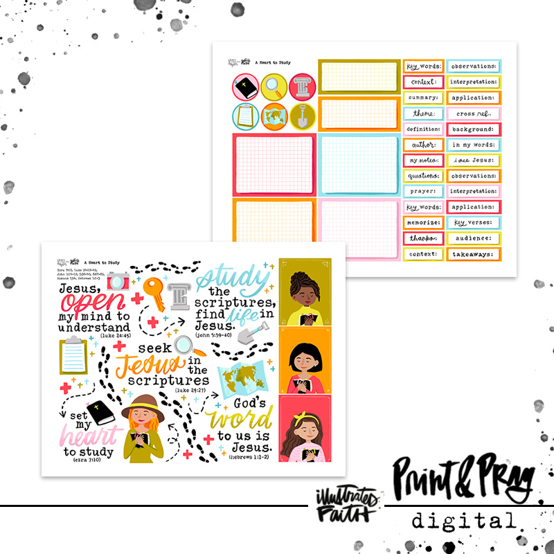Let’s study the scriptures! “A Heart to Study” includes some fun ephemera inspired by an archeological dig, but the heart of the set are printable templates and titles to help you grow near to Jesus through Bible study. These templates are formatted to slip into a traveler’s notebook, planner, or your Bible as you dig deep into the scriptures!