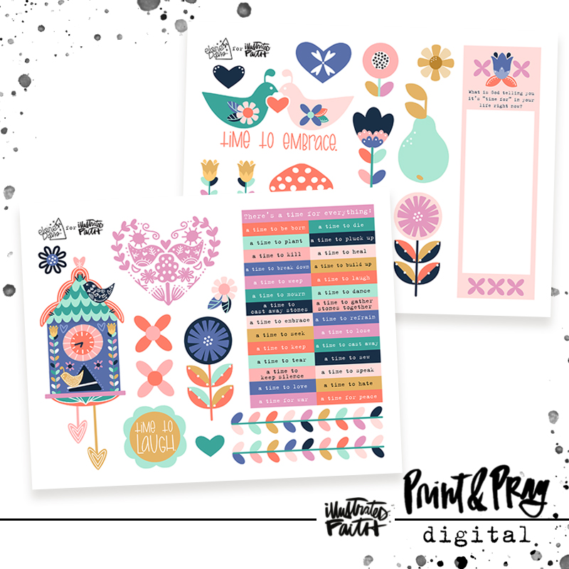 “‘It’s not fair. It’s not supposed to be this way. Why me?’ How often do we use these phrases when things don’t go like we think they should? Aside from the obvious answer (‘Because God said so!’), Ecclesiastes 3 gives us a pretty clear order of things: there’s a time for everything! We can rest knowing that everything but God’s love is temporary & there’s a time for it all. I used this to inspire my newest set Time to Laugh. It has a beautiful mid-century, Scandinavian vibe with repeating patterns to represent the natural order of God’s world. The candy colors & sweet images remind us of all His beautiful work!” -Elaine Davis