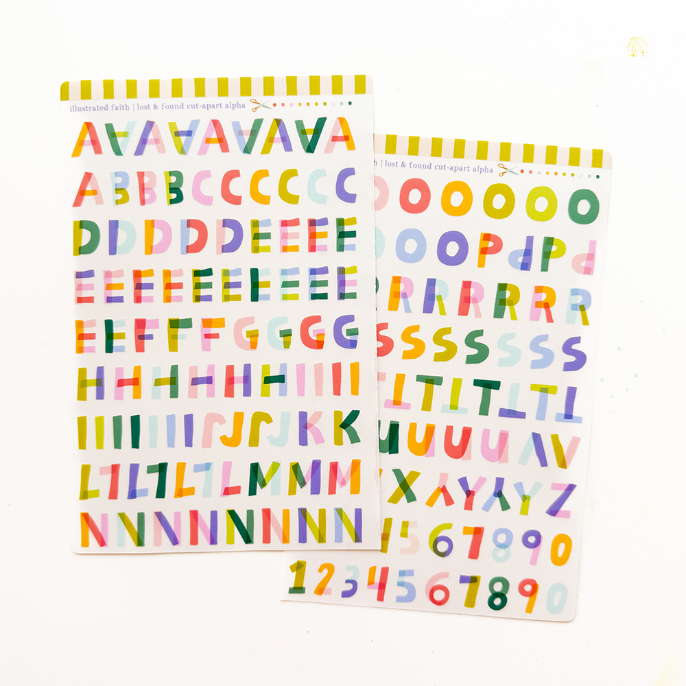 - This is a large sheet of clear cut apart alpha stickers (we suggest using an exacto knife to cut out each letter as you need them :)