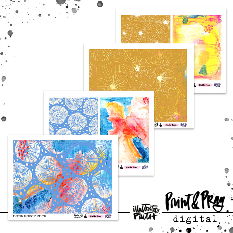 Mary and Emily are taking you back to the days of tie dying at summer camp with their Batik Paper Pack! Each page gives you a little bit of Mary’s messy abstracts and Emily’s whimsical patterns and loaded with bright colorful fun.