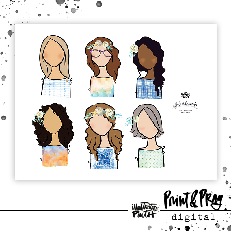The Print & Pray Shop is happy to bring you Beloved Society Basics! Beth Castro has put love & hard work into creating sets of basics for your Bibles so that you can find the perfect Beloved Society cutie for you! These sets will include stand-alone girls of all different races, hair colors, styles, & shapes so that there’s a diverse variety of girl choices! Which one is your favorite!?
