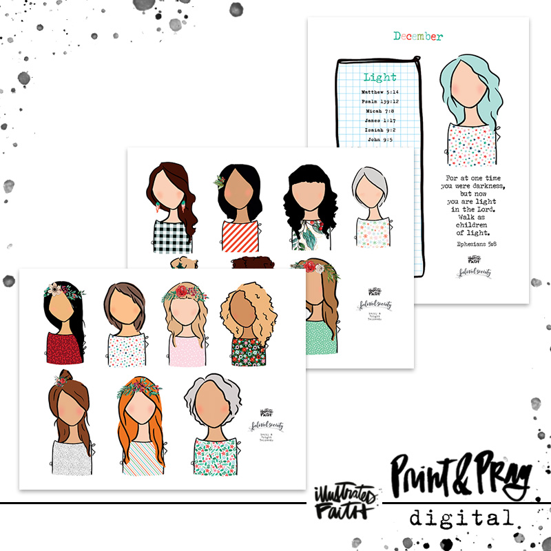 The Print & Pray Shop is happy to bring you Beloved Society Basics! Beth Castro has put love & hard work into creating sets of basics for your Bibles so that you can find the perfect Beloved Society cutie for you! These sets will include stand-alone girls of all different races, hair colors, styles, & shapes so that there’s a diverse variety of girl choices! Which one is your favorite!?
