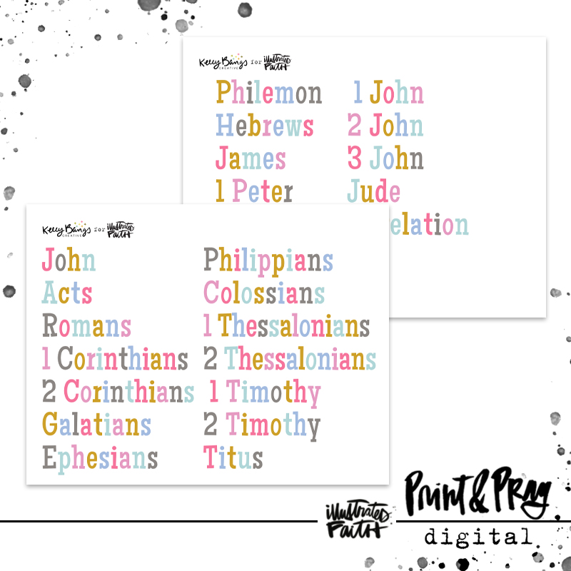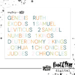 Who doesn’t love options? Well, now you have them with the titles of the books of the Bible. Whether you’re creating in the margins of your Bible, praying in your War Binder or making a mini album, these different fonts and colors are ready for your pages. I made them large so you can use them as larger titles, but remember you can always print smaller to make them work for you. So fun!