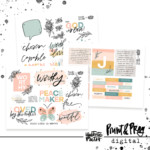 For Part 2 of the Big Story devotional, Jill has an updated toolbox for you with new wordfetti to coordinate with the kit, mini paint cards with updated scriptures, tabs, patterned strips, and a flashcard alpha in the zine style. The patterned strips can be used for layering, as faux washi strips or to cut out more tabs.