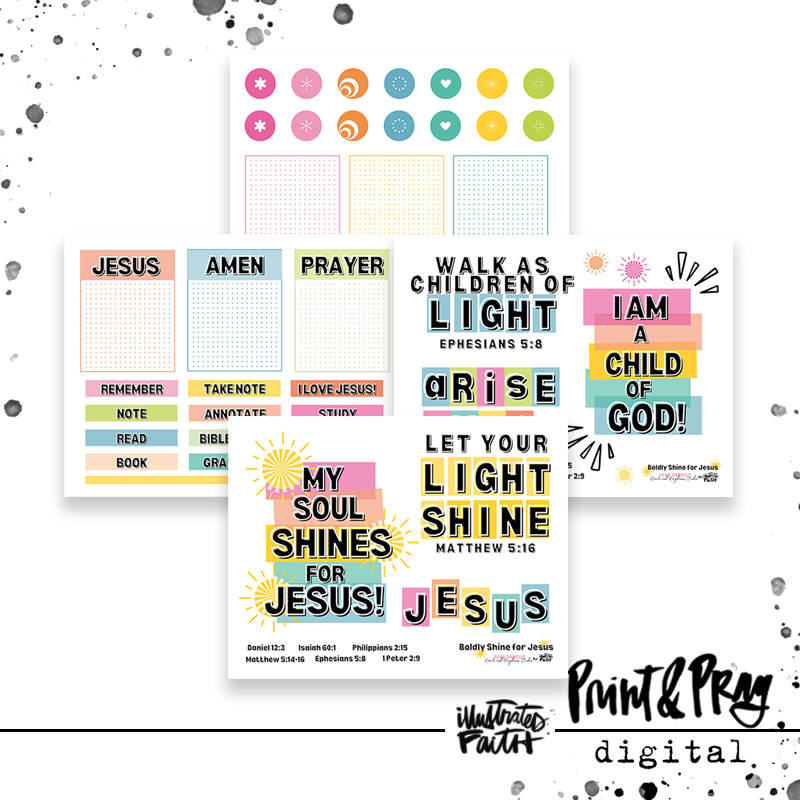I love a big, bold statement and that is exactly what Boldy Shine for Jesus is all about! It means walking in a way that showcases the goodness and glory of God light to others. It means sharing Jesus with confidence and love to everyone you come in contact with. This set was made to make a statement to you and whoever see’s it. Use it in your journaling or print as a reminder to all that see, that you are a child of God. As you read through the Scriptures, use the journaling cards to take notes on your takeaways and seek God’s guidance on how to shine brightly and become a beacon of His transformative hope! (The circles are exactly 1 inch to conveniently use with a 1 inch circle punch.)