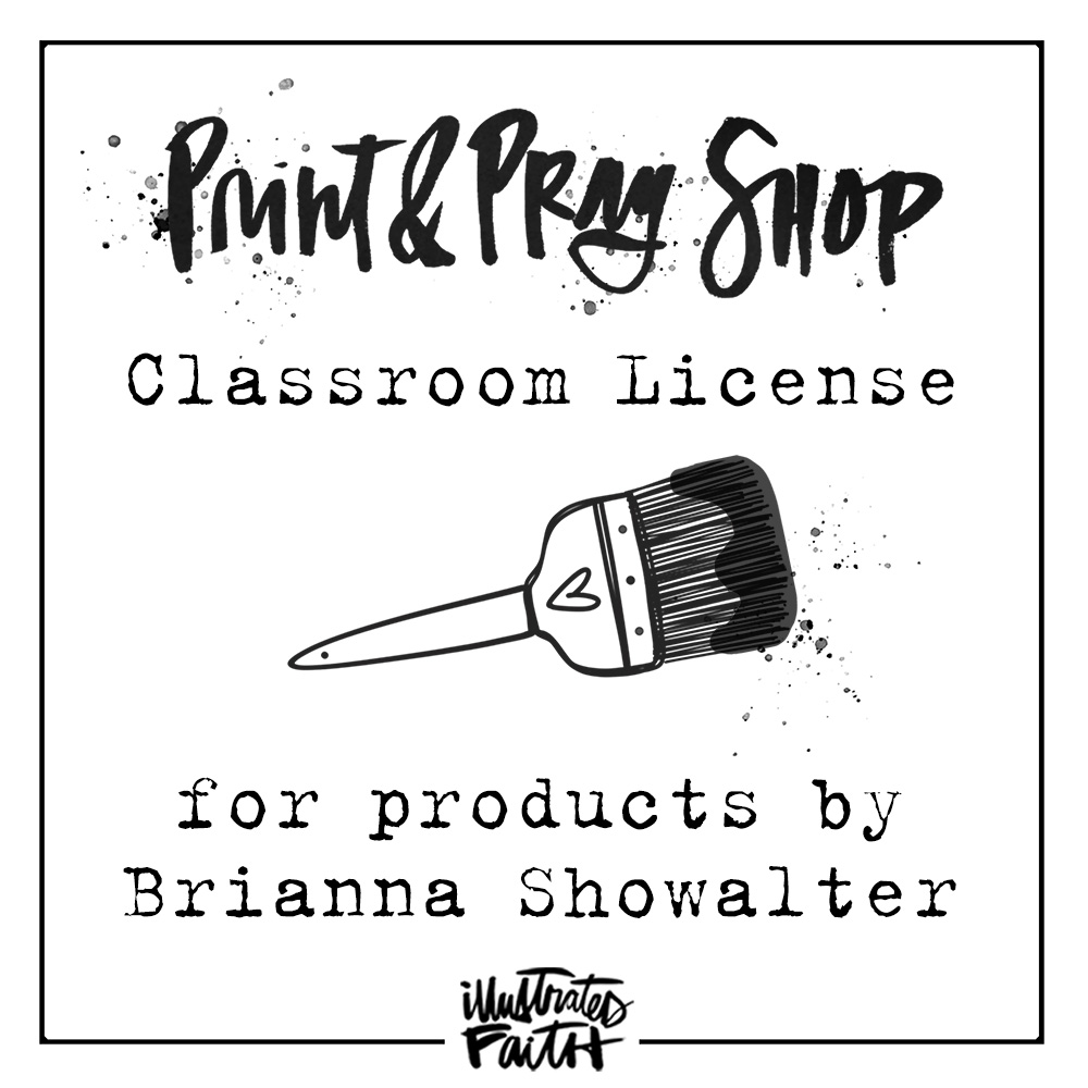 This is a ONE-TIME classroom license for products created by Brianna Showalter for a class of up to 30 students. Purchase this license along with the product that you’re interested in teaching. We want to make resources available to members of our community who are spreading God’s Word & teaching bible journaling classes!