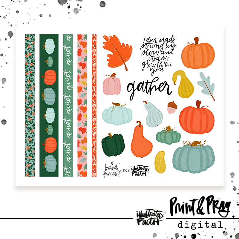 Print out this adorable print, pray, paste set designed by guest artist Brandi Kincaid as a fun tool to illustrate your faith! We’re THRILLED to have Brandi back sharing her gifts with our community! If you’ve never seen any of Brandi’s art, you’re about to fall in love with her honest, quirky style! This set will also have you falling in love with autumn! <3