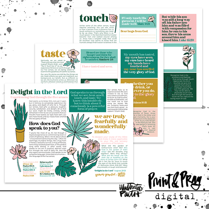 God wants us to know Him; to completely experience the joy, glory, and depth of who He is. As humans, the language of the five senses is how we learn best here on earth. Through our senses, God gifts us pleasure, laughter, security, satisfaction, and delight. All so that our souls might be totally, entirely, wholly refreshed in Him! God shows Himself through seemingly mundane things, like a hug from a friend, a beautiful sunrise, a mug of hot tea, some long-awaited good news, or the perfect song while driving. In other words, God speaks to us not in mystical, abstract ways but through the stuff of daily life. So we can proclaim that our mouths have tasted, our eyes have seen, our ears have heard, and our noses have smelled the very glory of God. Working through this kit is a great way to experience God in a very tangible way.