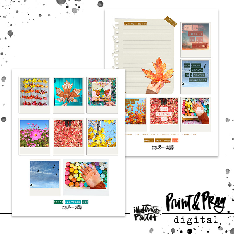 Mary has created autumn-inspired polaroids for you to incorporate into your projects this season! She has included a space for you to be intentional about recording your joys! She prays you would have a content and joy-filled heart, keeping your mind set on eternity, and not allowing circumstances to dictate your JOY! Now to God our Heavenly Father be glory forever and ever.