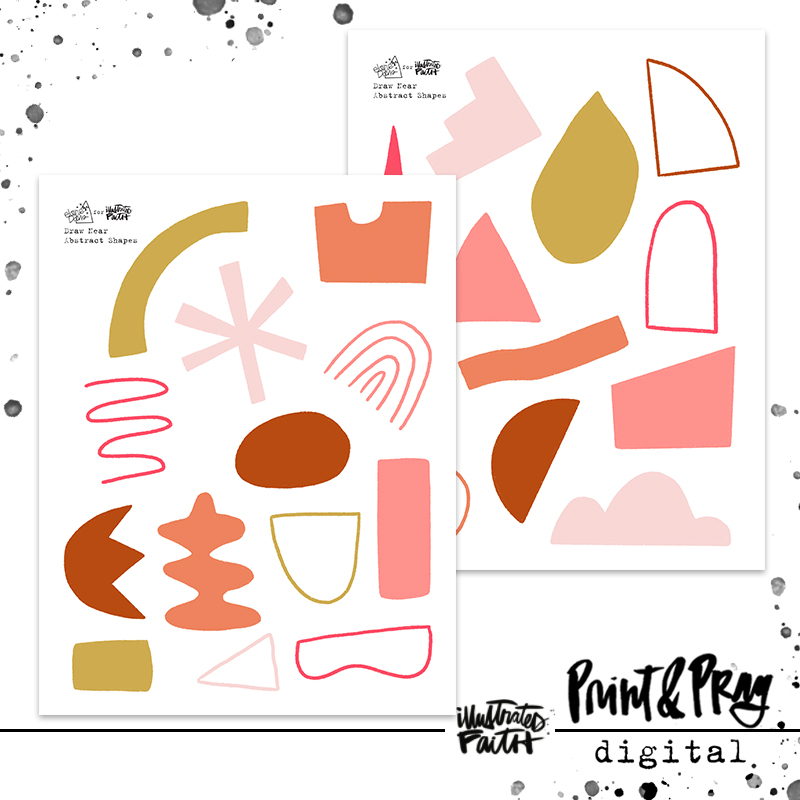 The October 2021 devotional kit Draw Near by Lauren Norris is such a special kit with abstract design & SoCal vibes! Elaine decided to create a library of abstract shapes to be used with this kit! These shapes are best used when printed on clear sticker paper, vellum, or acetate & layered over each other. Have fun playing with these, friends!