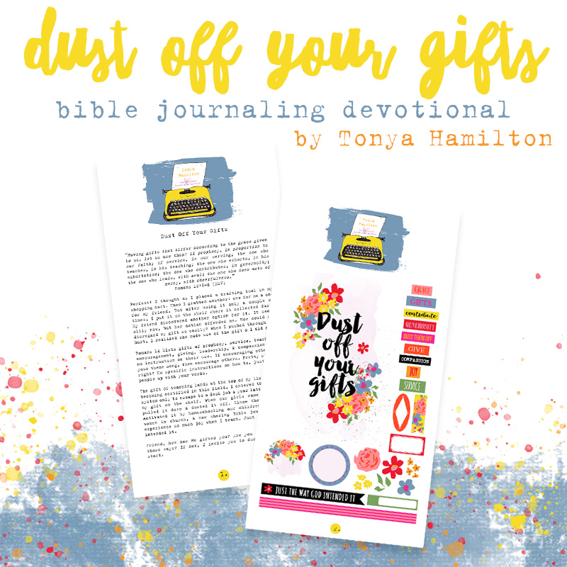 Join us for Dust off Your Gifts– a one day devotional with a corresponding print & paste sheet to make bible journaling amazingly easy!