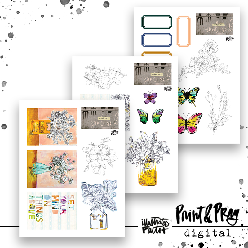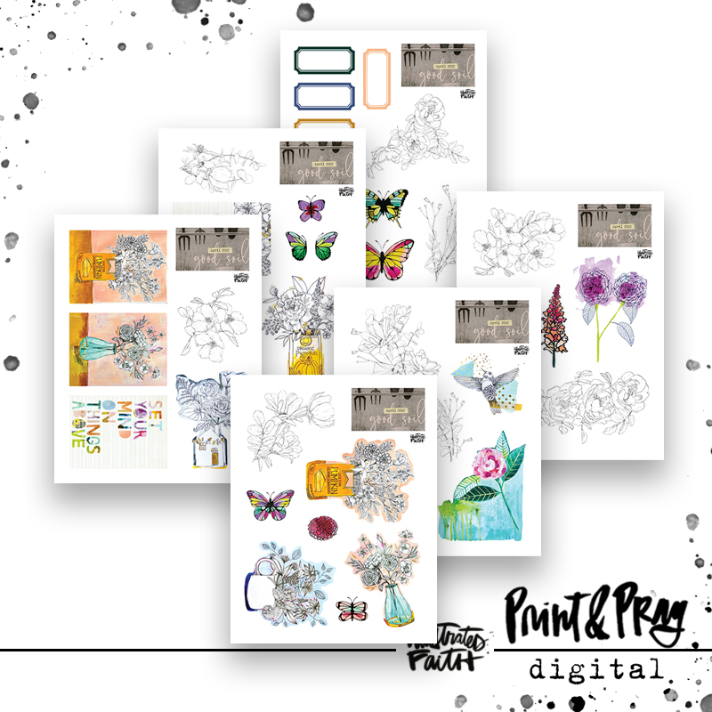 Enjoy these pieces of ephemera that coordinate with the “Good Soil” kit! These are perfect for collaging, layering, & illustrating your faith!