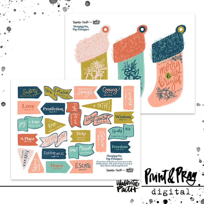 This set includes 25 promises of God for you to hang on to this Holiday Season. Pick a few to focus on or do a daily Advent walk through them all. Oversized stocking tags can be used to journal, as gift tags or string them up as a garland that reminds of God’s faithfulness all season long!
