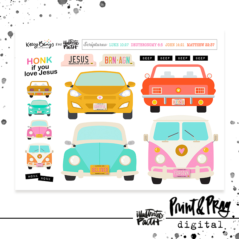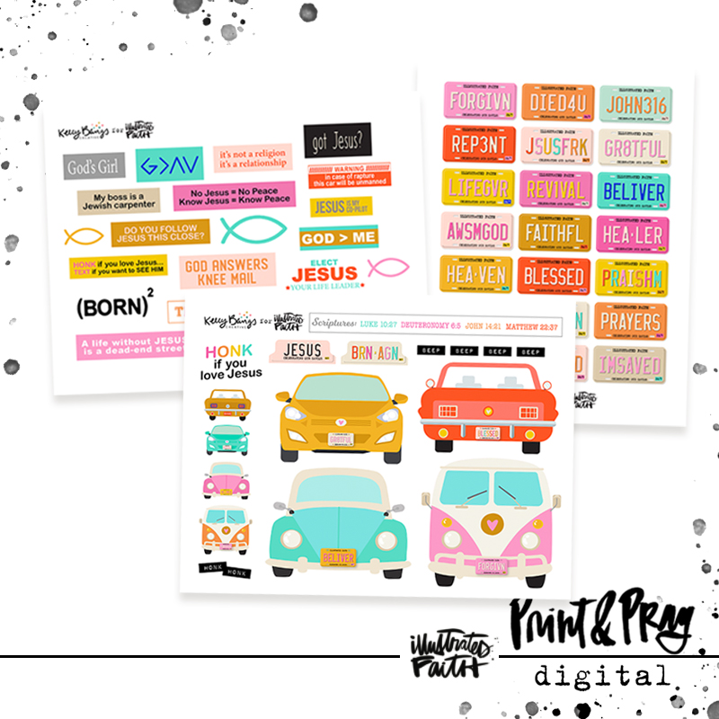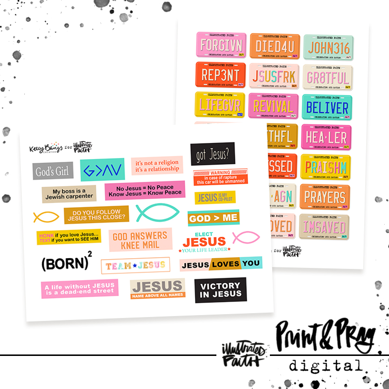 Who doesn’t love a good bumper sticker? Or custom license plate? What a great way to proclaim the truth! Everywhere we go we represent Jesus, and this set is a fun way to document that.