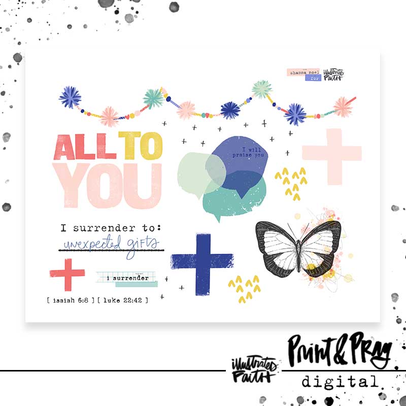 “When we can surrender each step of our journey to Jesus, that is cause for celebration, friends! He has us! He loves us! He wants to care for us & He always has our best interest at heart. When we look to Jesus, we take the attention away from the enemy & that truth is powerful & worth documenting! I hope this set helps you tell that story of surrendering it all to your Father!” -Shanna Noel
