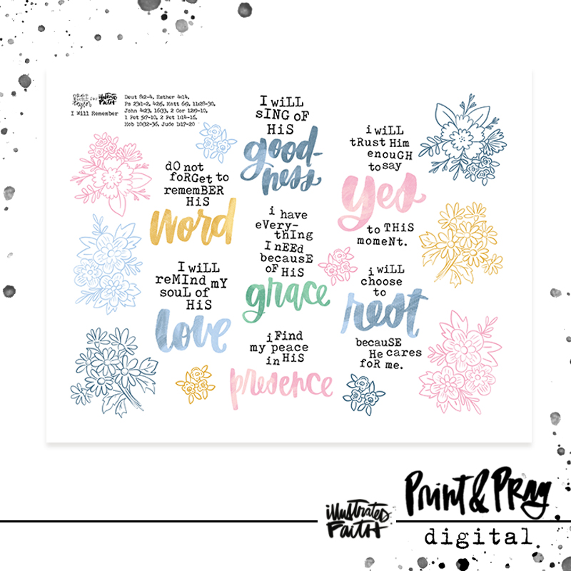 “When my heart feels panicked and my mind is racing, I speak to my soul. Uncertain times are an opportunity to remind ourselves of what is certain. What we don’t know does not cancel out what we do know: that God is a sure foundation. Don’t forget to remember His goodness and grace! This set features springtime florals and title starters to help you dig deep into the truths of God’s word and stand on solid ground of His word. ‘I Will Remember’ also has a coordinating Scripture card set and patterned papers.” -Taylor Rauschkolb