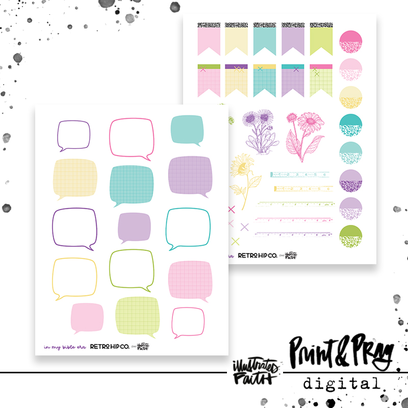 Hands up if you’re in your Bible Era! This is a season of opening up God’s word regularly and being ready to learn! We’ve got an 80s-style school groove in this set with all the bright colors for your Bible pages.