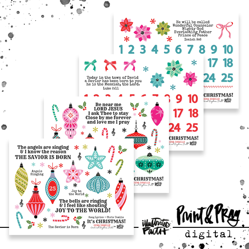 Gena has created a vibrant, ornament-themed set inspired by Chris Tomlin’s amazing song “It’s Christmas.” The initial two pages feature the song’s lyrics, while the final two showcase two different color schemes for the numbers 1-25, along with the Bible verses that inspired Chris’s writing. Gena invites you to play the song (the It’s Christmas Live Medley is a must-listen), snap your fingers, and dive into your Advent journaling! Wishing you all a Merry Christmas, friends!