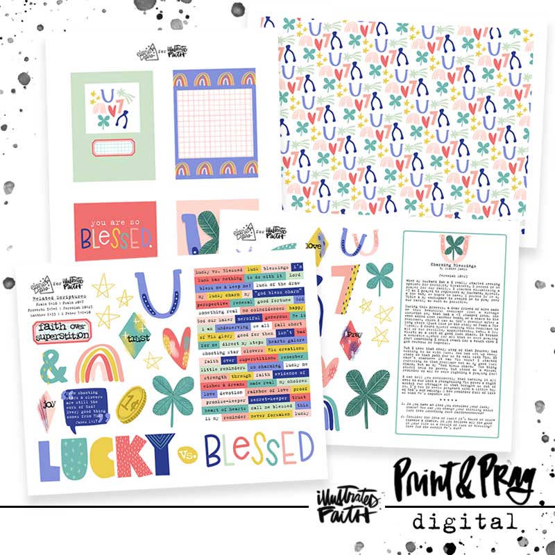 “My newest set Lucky Charms was inspired by this community! I had a few people request the theme of “Lucky vs. Blessed” & the more I got into it, the more I understood something. If we fully buy into the idea of luck, we’re giving away credit & glory that should be going to GOD! That makes me feel ashamed just thinking about it! We have to know that every good thing comes straight from the Lord! So why not repurpose your lucky charms to be reminders of God’s goodness!? Prayer will serve you much better than a 4-leaf clover ever will!” -Elaine Davis