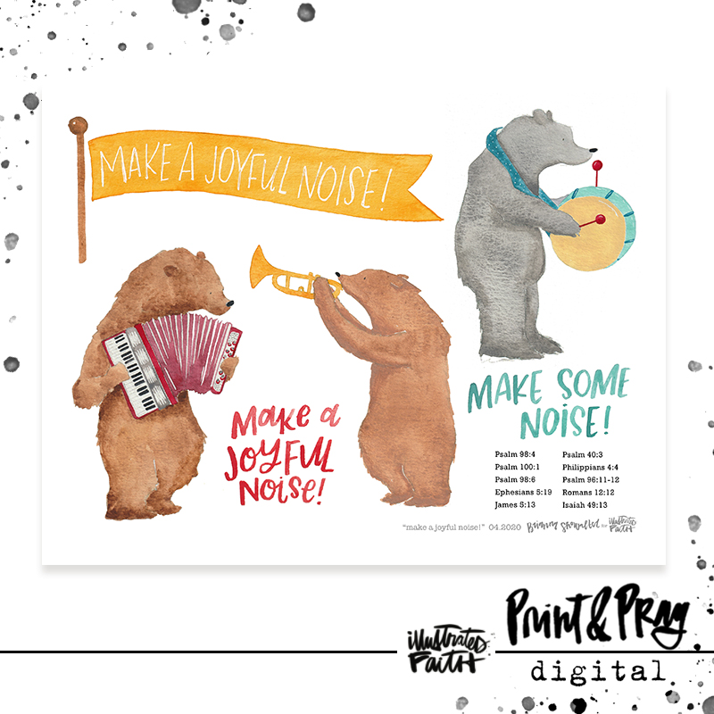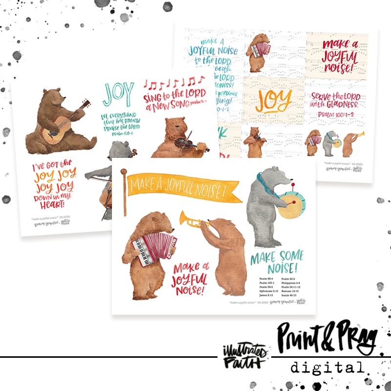 “Whether it’s listening to worship, participating in worship, singing or playing an instrument; there’s just something about music that fills us and lifts us to a higher place. This set began with the experience of watching/listening to my daughter learn the violin. I thought it would be horribly and scratchy, but it’s been a surprisingly welcome sound in our home for the past few years. She’s still a beginner, and a bit fumbly like these bears. And playing duets with me on the piano or my husband’s guitar is still a little silly, but I truly believe that it’s all music to God’s ears. So go out and make a joyful noise, no matter how it looks or sounds!” -Brianna Showalter