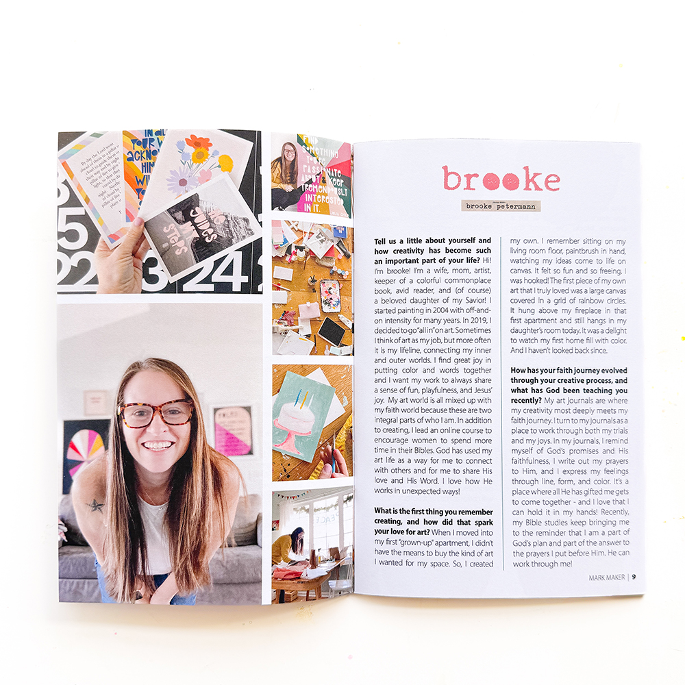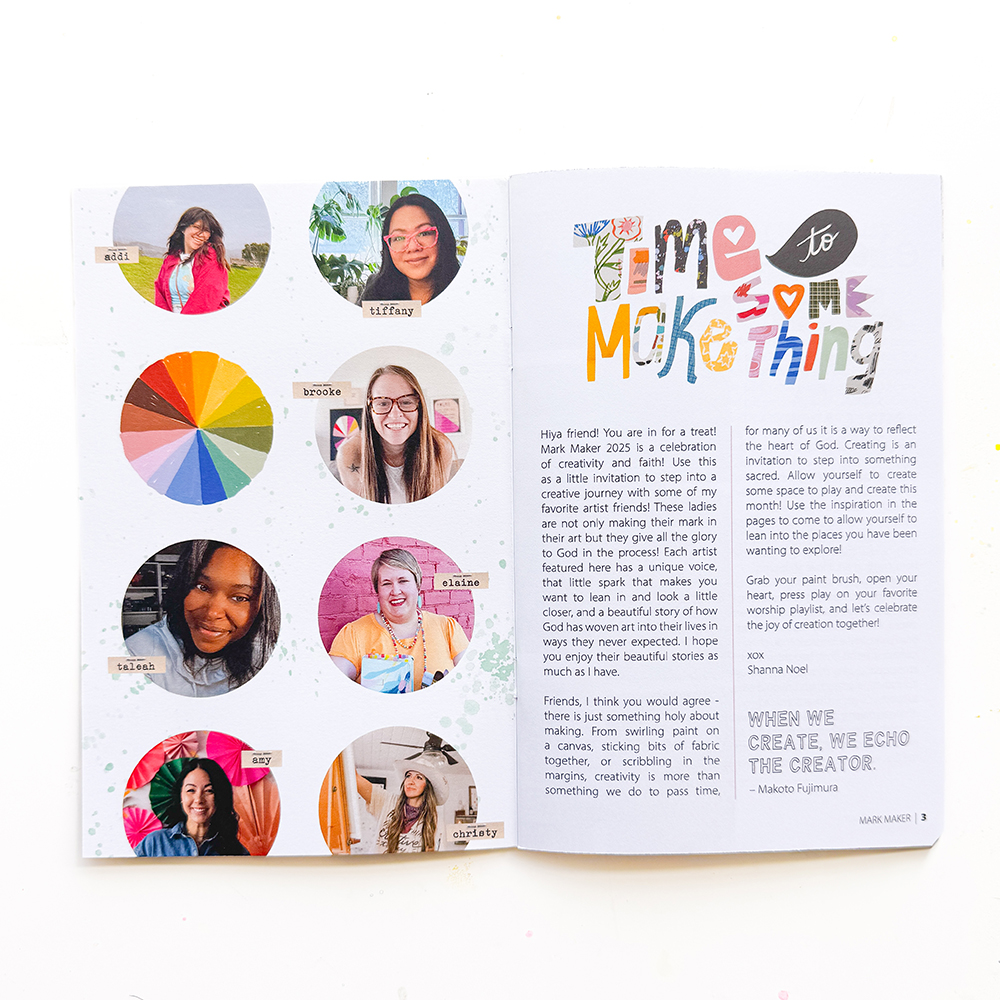 Join us as we peek into the places where beautiful things are created as we join Christy Beasley, Taleah Sanders, Elaine Davis, Amy Hawthorne, brooke petermann, Tiffany Johnson, and our girl Addi in their studios! We will be exploring the places they create, hearing about what God is doing on their hearts, opening up our Bibles together, exploring new color palletes, and being challenged by each one of these artists to try something new that inspires them! I absolutely can’t wait to be stretched in new ways by these beautiful creatives that encourage us to get out our favorite creative tools and write ourselves a permission slip to enjoy the process!