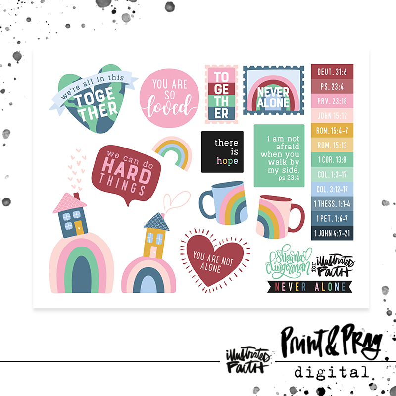 “This month as I was pondering what to create, I kept coming back to this place we are in time right now, where we are all so separated from each other. Yet in all of our isolation we are also more united and together than ever. Sharing a singular sense of hope, a universal compassion. There is a beautiful togetherness I can feel in the air right now, and I can’t help but think how God’s heart must be filled right up as he orchestrates this. God guides us in supporting one another, and even in facing hard things together. I love that God loves us so much that he surrounds us with fellow human beings that love us too. We can always trust that even in isolation, God is right by our side, and he continually show us ways we can stand side by side (even if it is more figuratively right about now). How beautiful to know that we are truly never alone.'” -Shawna Clingerman