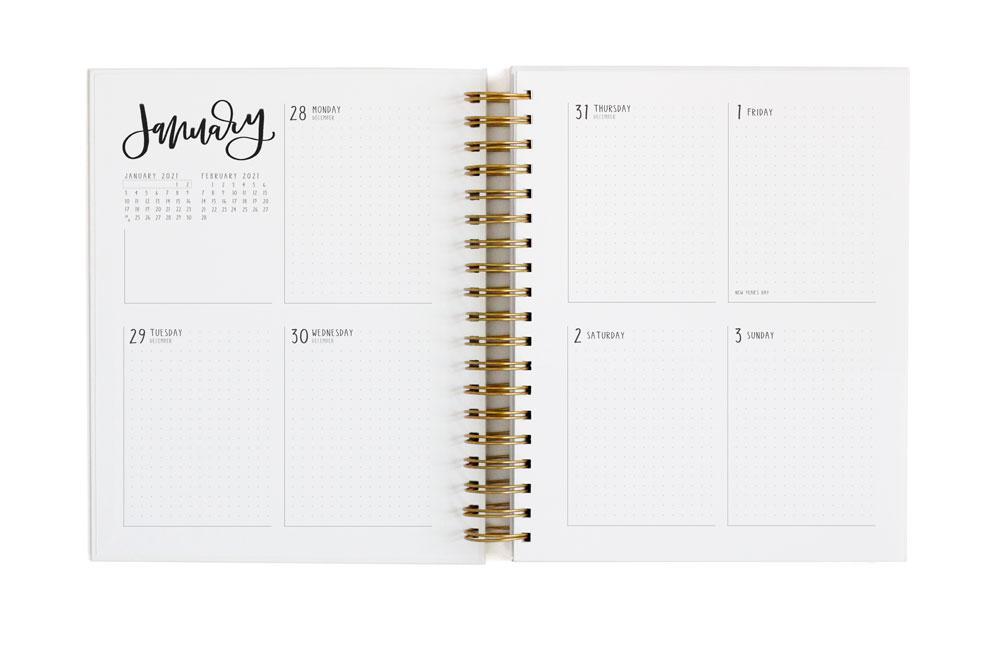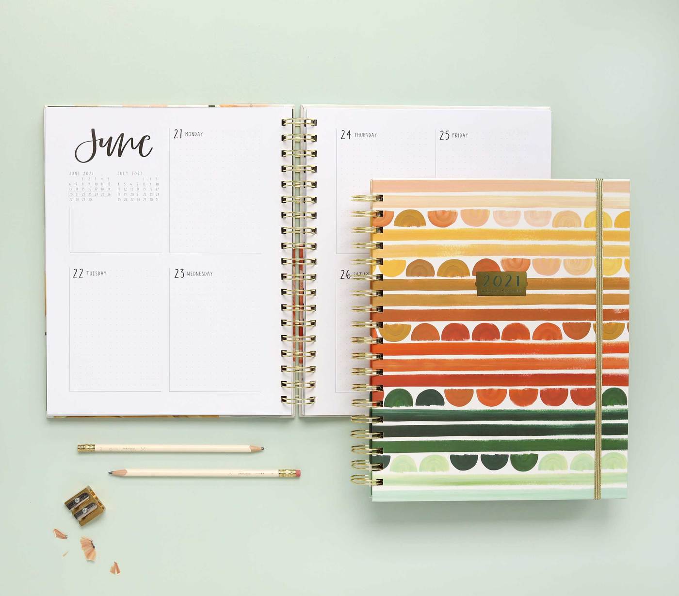 Features | Hardcover, wire binding, elastic closure, snap-in ruler, gold foil