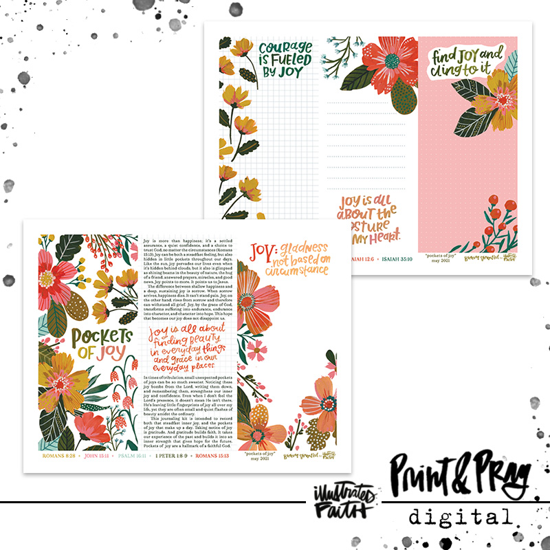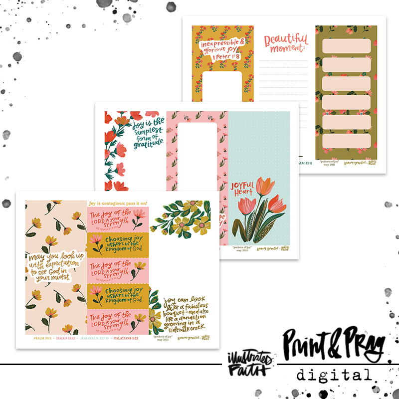 Joy is more than happiness; it’s a settled assurance, a quiet confidence, and a choice to trust God, no matter the circumstances. Joy is a steadfast inner feeling, but it’s also hidden in little pockets throughout our days. In times of tribulation, these small pockets of joy are so sweet.Noticing these joy bombs from the Lord, writing them down, and remembering them, strengthens our inner joy and confidence. Even when we don’t feel the Lord’s presence, it doesn’t mean He isn’t there. He’s leaving little fingerprints of joy all over our lives, yet they are often small and quiet pockets of beauty amidst the ordinary. Pockets of joy are a hallmark of a faithful God. This journaling kit is intended to record both that steadfast inner joy, and the pockets of joy that make up a day.