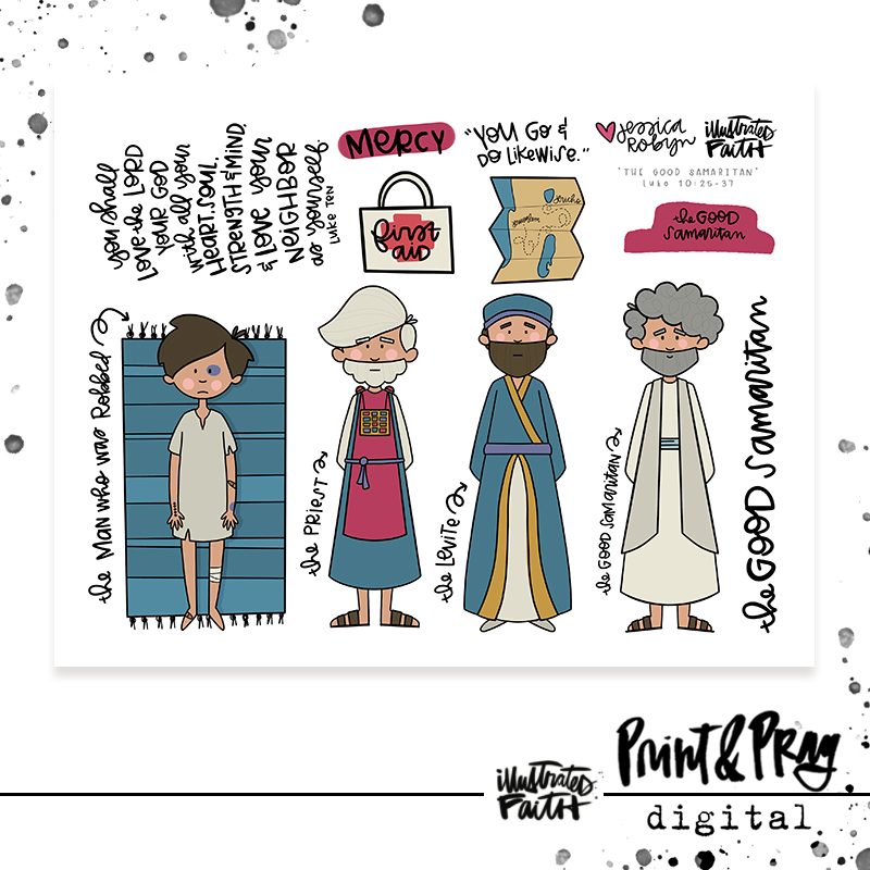 Bible journaling is such a powerful tool to share with your kids! Use these cute simple cut-aparts to teach your children about the story of the Good Samaritan in a fun way! Jessica Robyn is the illustrator behind this adorable set! We love how her art speaks to kids & makes it fun & easy to teach them the stories of the Bible!
