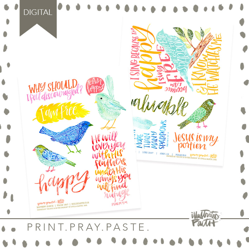 Print out this adorable print, pray, paste of original watercolor art designed by Brianna Showalter as a fun tool to illustrate your faith!