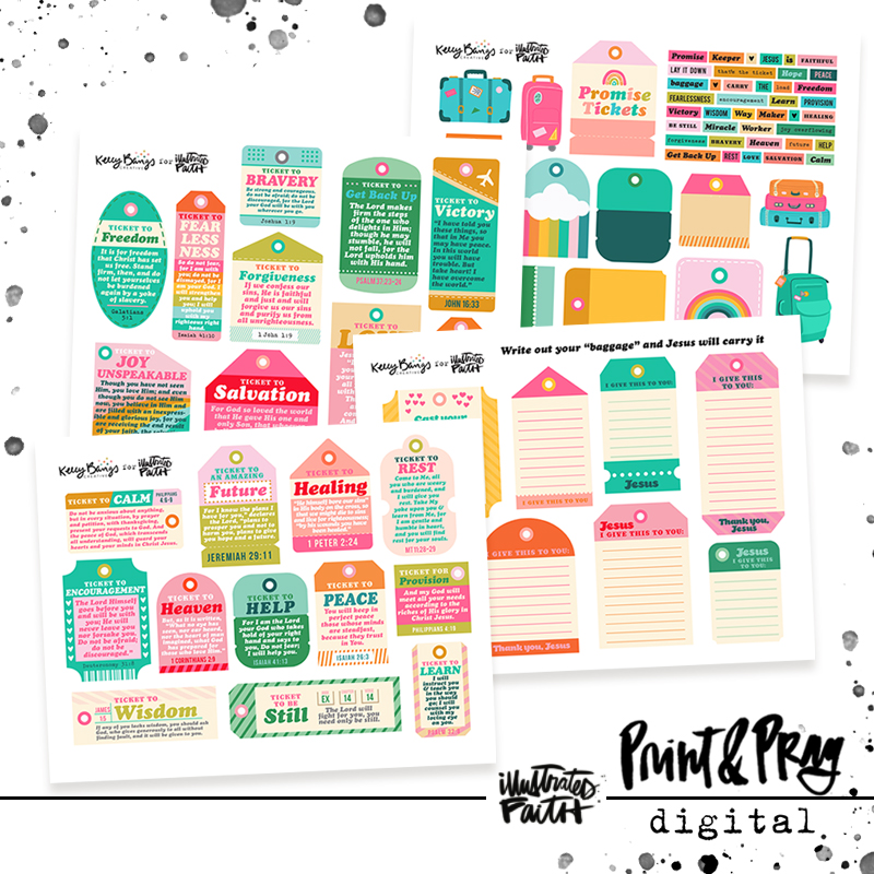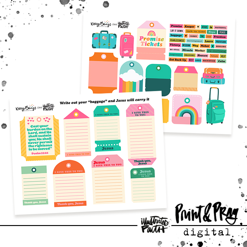 Jesus made us a lot of promises. Use these tags and tickets to remind you to stand on those promises. The blank ones can be used to write out things that are heavy on your heart. Jesus said He would carry those things for you.