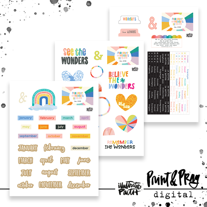 Enjoy these pieces of ephemera that coordinate with the “Remember the Wonders” kit! These are perfect for collaging, layering, & illustrating your faith!