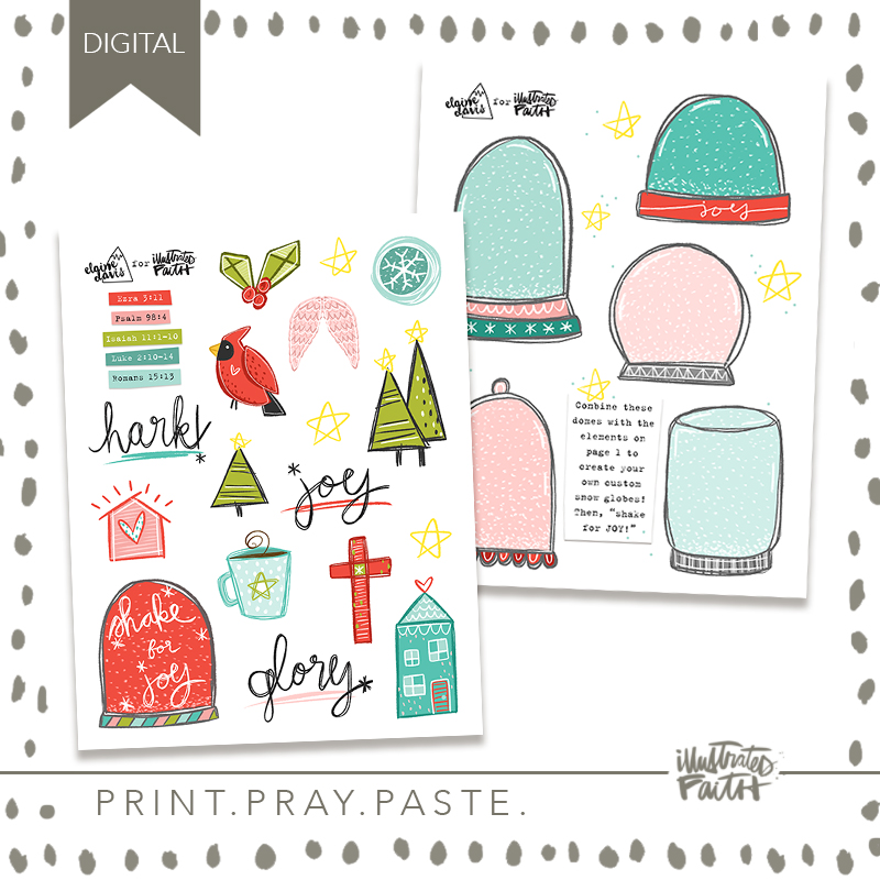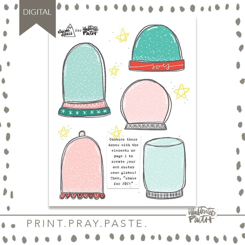 Print out these super cute ephemera pieces designed by Elaine Davis as a fun tool to illustrate your faith! Combine the dome images with the ephemera pieces to build your own snow globes!