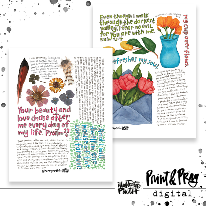 These past few months have been extremely busy, filled with quite a bit of travel, late nights, early mornings, loud and crowded environments, and not a lot of time for creative input. Settling into Psalm 23 was like a hug, as I was reminded of so many truths. Here are some thoughts and illustrations (as well as some feathers & flowers!) from my month in this wonderful chapter.