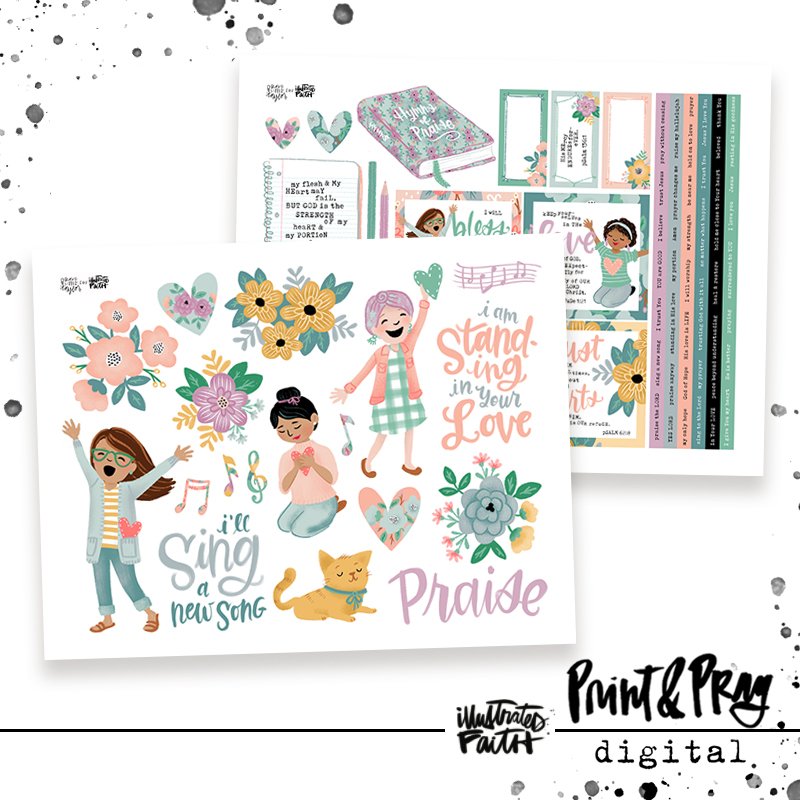 “Stand in your Love” is all about finding strength in Jesus at all times. When seasons of sorrow and suffering come, God’s love is strong enough to hold us. This set features women in prayer and worship, as well as soft floral ephemera and journaling elements. Be sure to check out the coordinating papers too!” -Taylor Rauschkolb