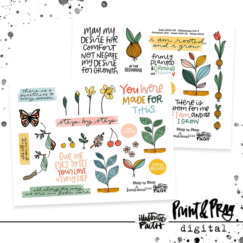 We grow in steps and stages, cycling through this messy, marvelous life, and this set was created to celebrate what it means to be both rooted in who we are, and open to what’s coming next. There’s so much beauty to honoring where we are, knowing where and who we came from, and making space to take that goodness with us as we journey to be who we are meant to be, and so much of that comes from paying attention to life and growth as it unfolds, step by step by step. Luckily, we get to step together.