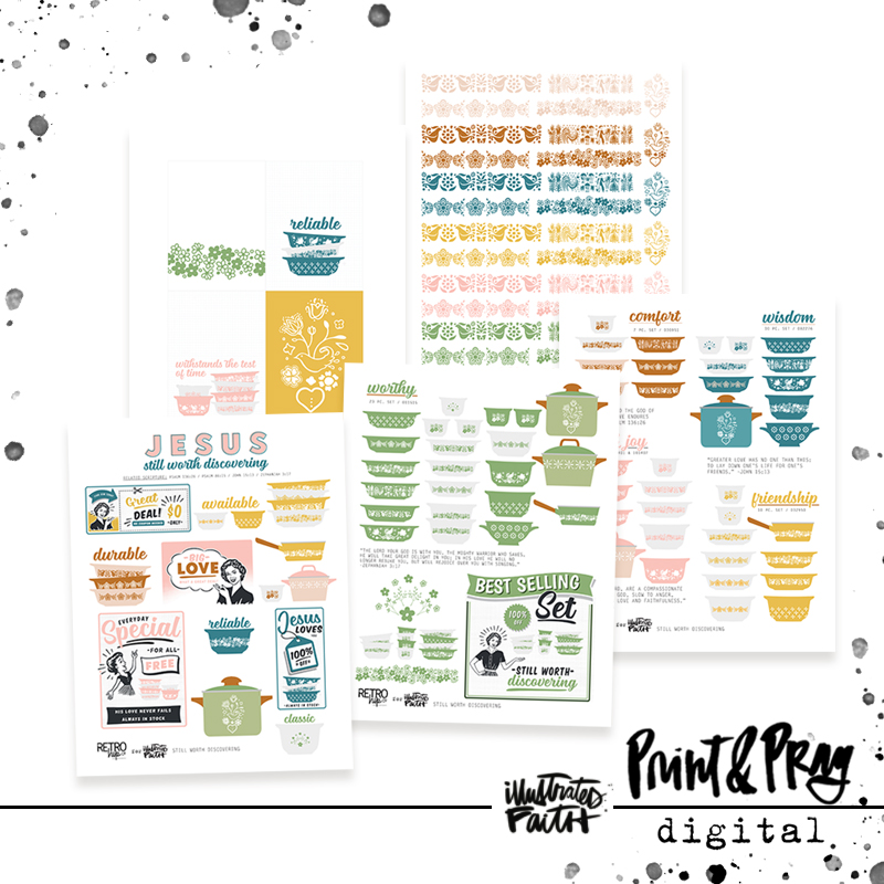“I think we can all agree that Pyrex never goes out of style – and neither should Jesus! Did you know that Pyrex used the tagline “still worth discovering” in their advertising for years? When people began moving away from their brand, they needed to reassure their customers that they were still relevant. Do we need reassurance from Jesus that He is still relevant? That He is still worth discovering? As the world becomes more self-focused, coming back to the security and durability of Jesus is what we need most. Like Jesus, I think of my Granda’s Pyrex dishes as something to be treasured, because they have lived and loved and stood the test of time. I hope this set gives you all the nostalgic feels and helps you remember that Jesus is still worth discovering!” -Andrea Gray