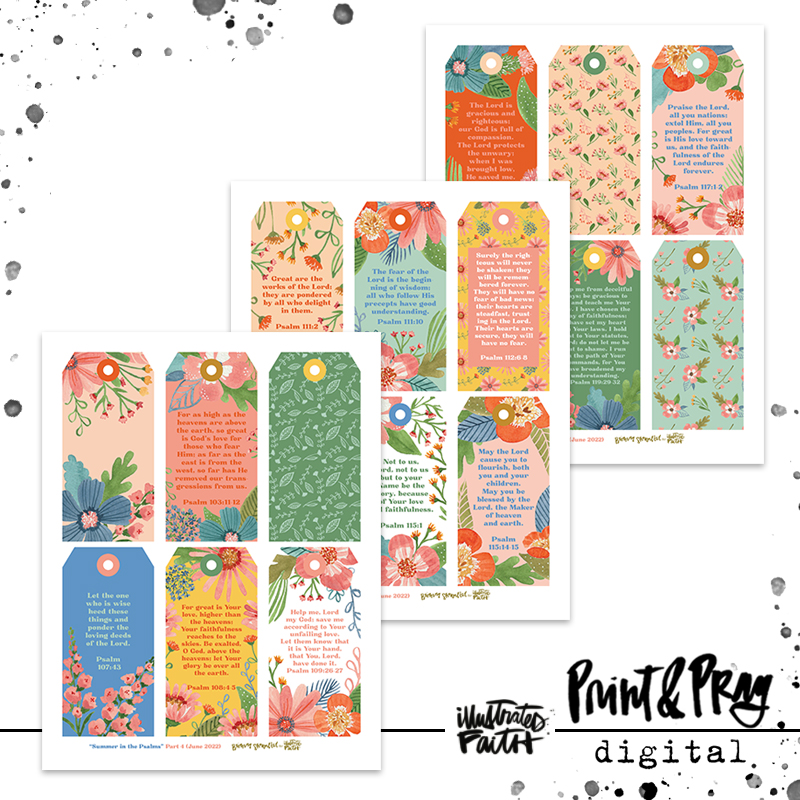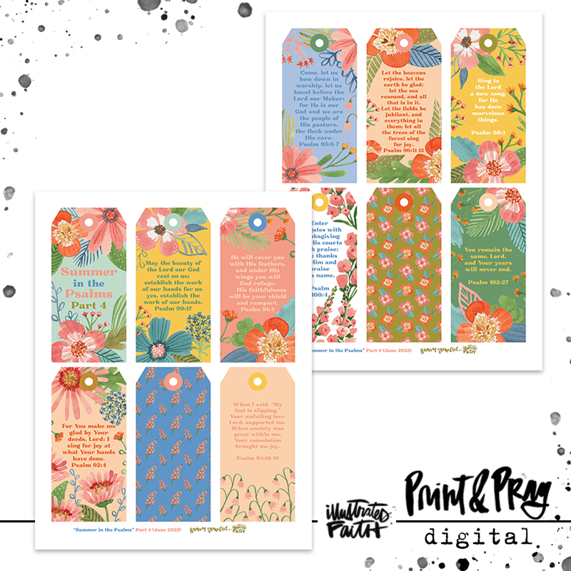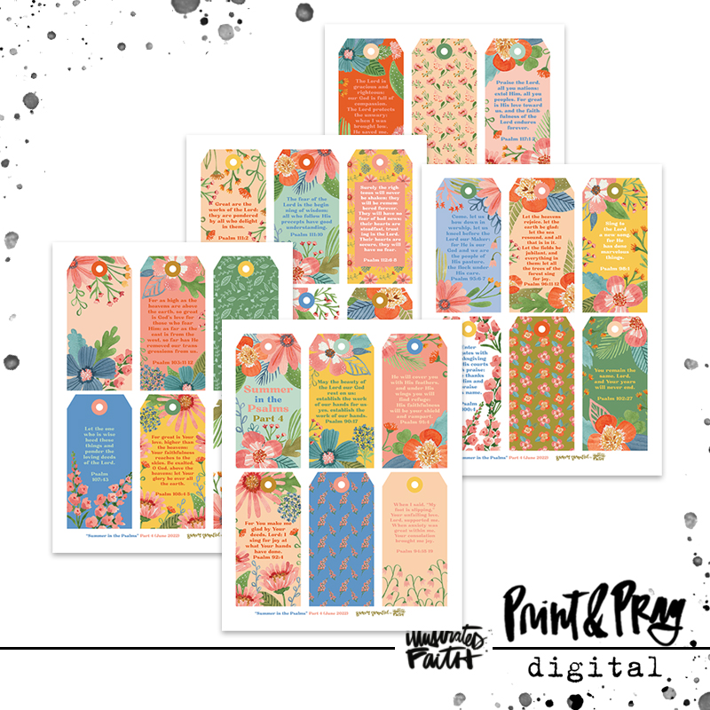 The world around us is constantly changing. This has never been more apparent than in the last few years we have lived through. So many feelings, emotions, decisions and dreams crowd our brains and hearts. During times where we need comfort amidst upheaval, and a certain knowledge that God is there, He cares, and He has goodness for us, the book of Psalms is the perfect place to turn. This is the fourth installment of the Summer in the Psalms set (the first three are available in the Print & Pray shop from last summer and earlier in June, and the final set will be released in July 2022). Brianna invites you to spend the summer camped in the Psalms with her, letting these truths and promises be like a blanket for your soul. This tag set is a perfect low-stress project to get beauty and Scripture in front of your eyes daily. The colors coordinate with Truth Camp, and would be so fun to use with those jars in 100 Days of Looking Up.