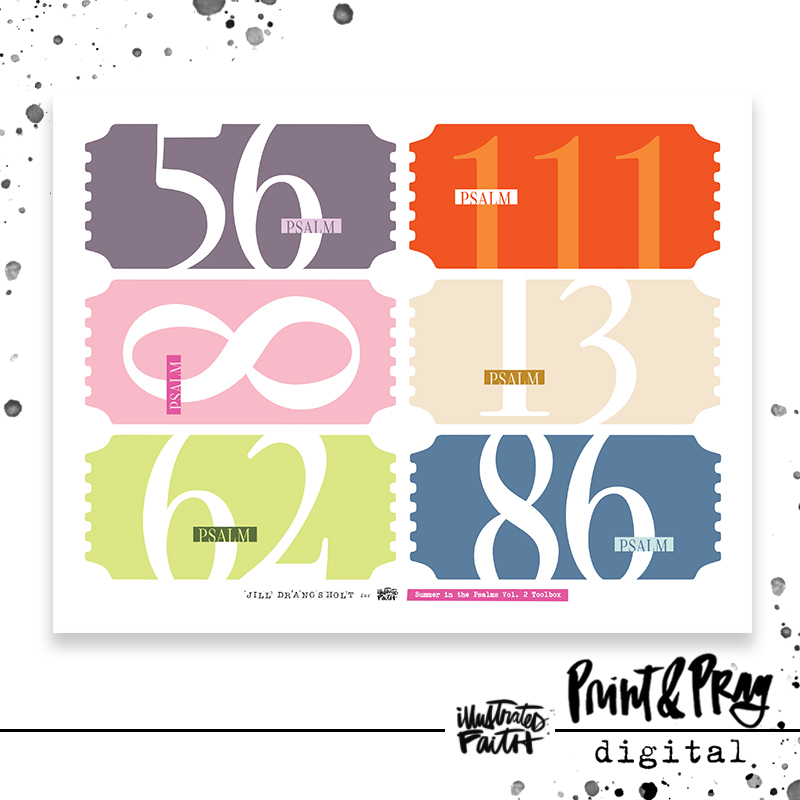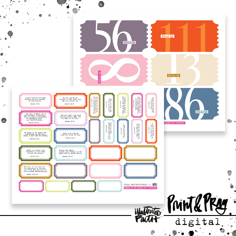 This toolbox was designed to use alongside the Summer in the Psalms Volume 2 devotional kit. It includes scripture labels from the kit typed out for you on Jill’s vintage 1957 Royal typewriter, ticket title starters for each Psalm in this devotional, a few blank labels, and bonus scripture labels in a mini size. If you’d like your typed scriptures on something other than a label, you can always print the labels on translucent paper (like clear sticker paper, acetate, or vellum) and then cut the scripture out of the center to adhere to anything you want to. Or cut them into strips for scripture wordfetti!