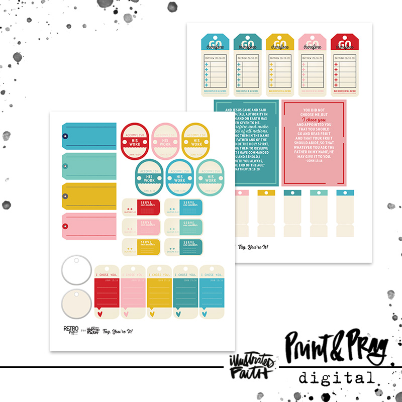 Based on Matthew 28:18, Jesus essentially tagged His people to go out and fulfill His commandments through discipleship and good works. “Tag, You’re It!” is a whole set of basic tags that can be used for so many projects with reminders that we’re it!